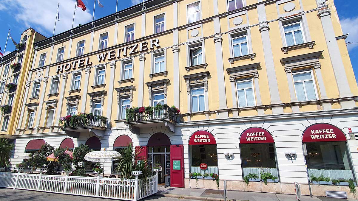 Das Hotel Weitzer liegt zentral in Graz an der Mur und bietet ein riesiges Frühstücksbuffet auch für externe Gäste. Neben dem Speisesaal liegt gleich das Cafe Weitzer dass für klassische Mehlspeisen bekannt ist.