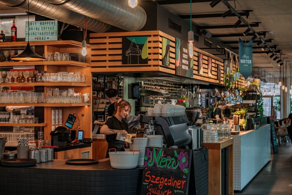 Das Kunsthauscafé in der Nähe des Grazer Kunsthauses kombiniert modernes Design mit einer entspannten Atmosphäre. Hier gibt es abwechslungsreiche Frühstücksangebote, von herzhaften Eiern bis zu frischen Croissants und gesunden Bowls. Besonders beliebt ist das „Künstler-Frühstück“, das den kreativen Geist des Cafés widerspiegelt.