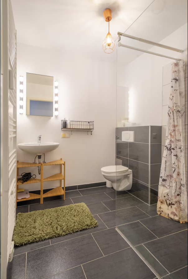The apartment has everything you need. It is very spacious and comfortable and although close to the center, it is located in a quiet side street. The private parking space on the property is also practical.