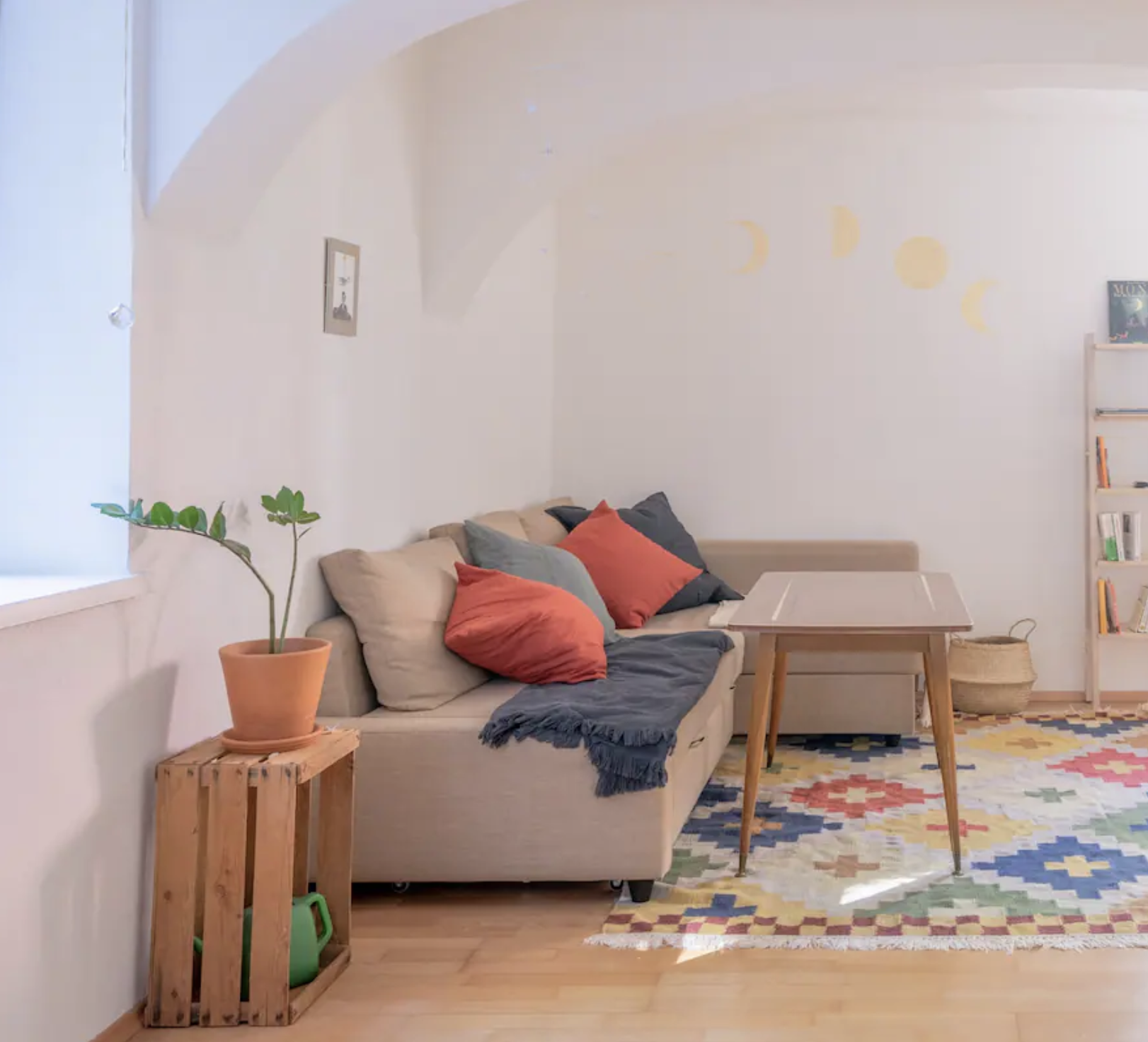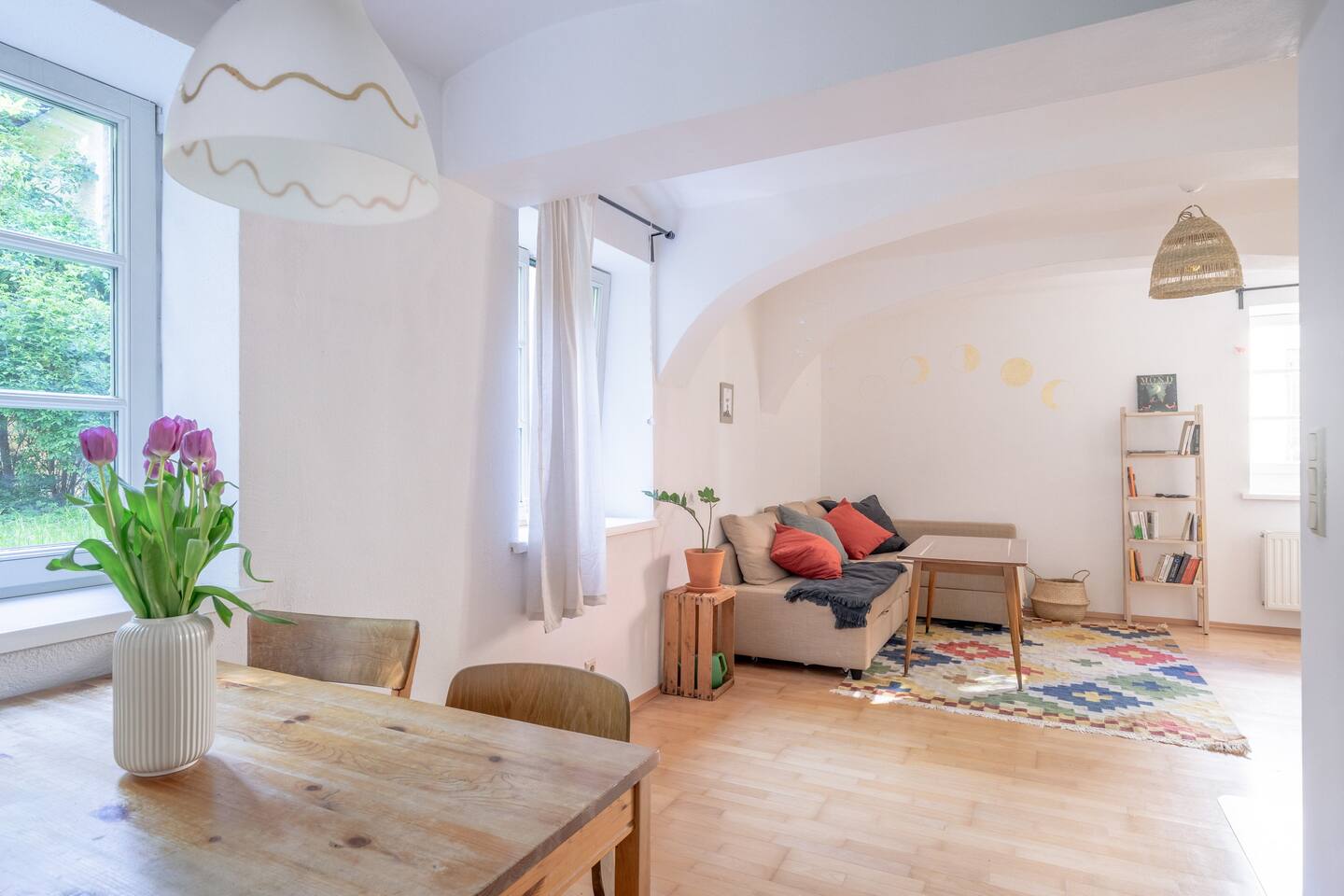 The apartment has everything you need. It is very spacious and comfortable and although close to the center, it is located in a quiet side street. The private parking space on the property is also practical.